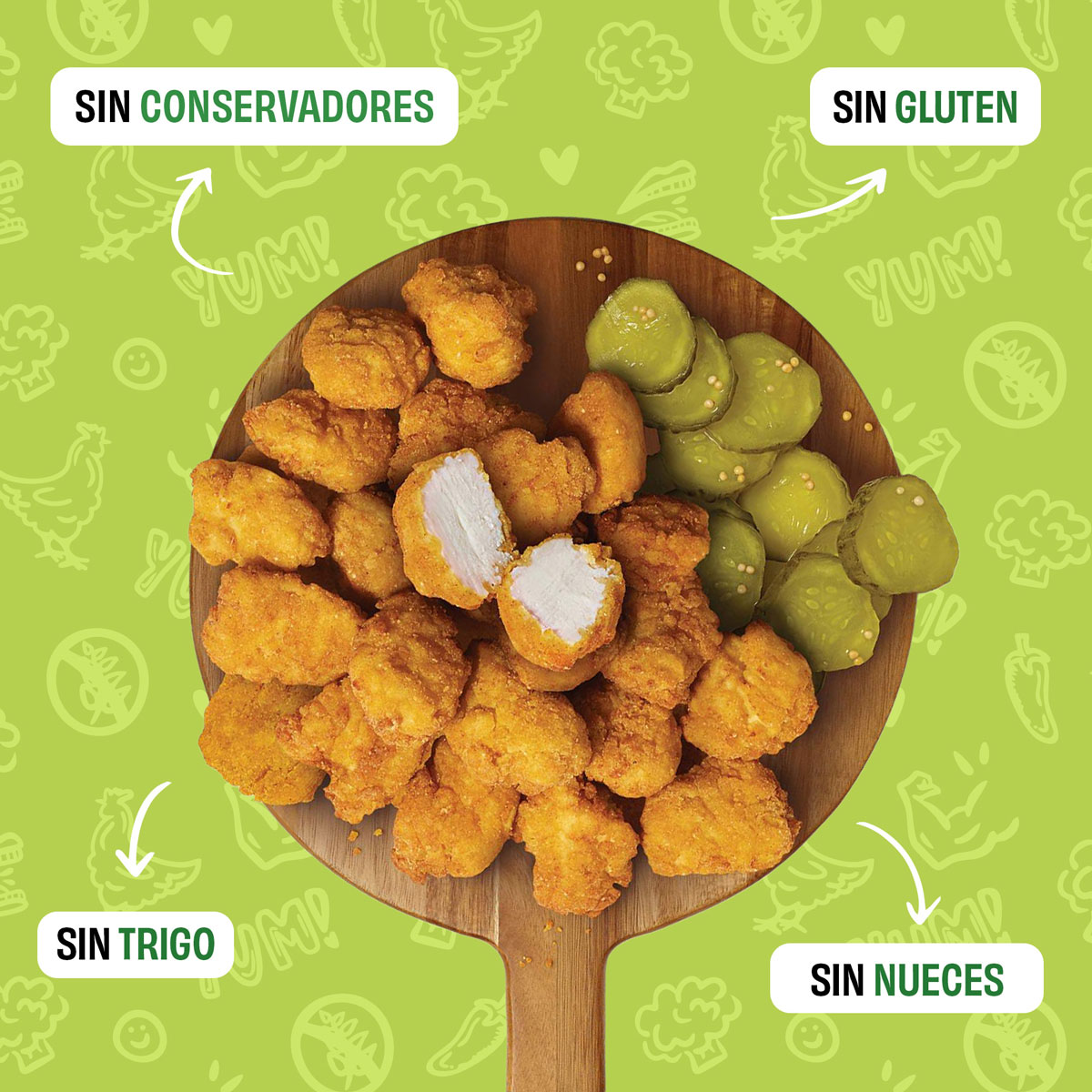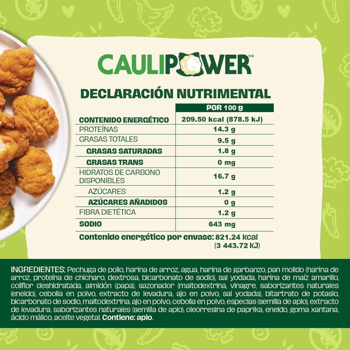 Los Chicken Bites con Eneldo* de CAULIPOWER están hechos con pechuga de pollo real, criada sin antibióticos jamás, y envueltos en un crujiente empanizado de coliflor que los hace naturalmente libres de gluten.