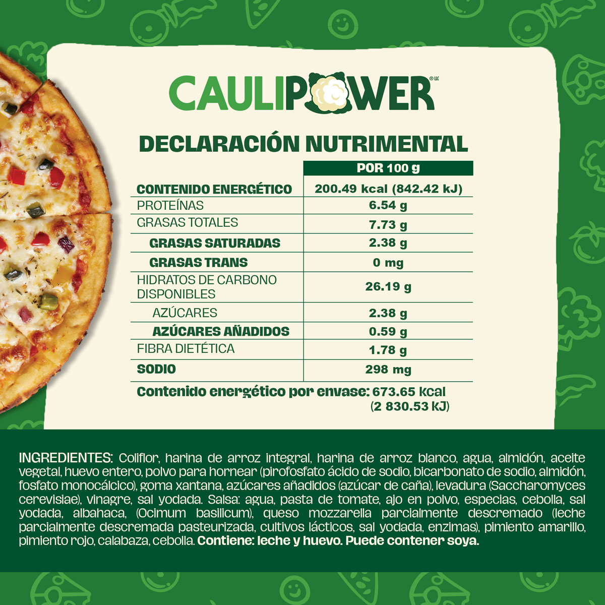 Como todos los productos CAULIPOWER, esta pizza es libre de gluten, está hecha sin colorantes, sabores ni conservadores artificiales, y está lista en minutos. Así que relájate, disfruta y LIVE LIFE ON THE VEG® al estilo mexicano.